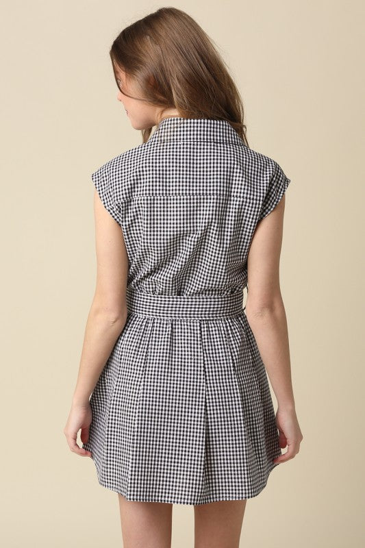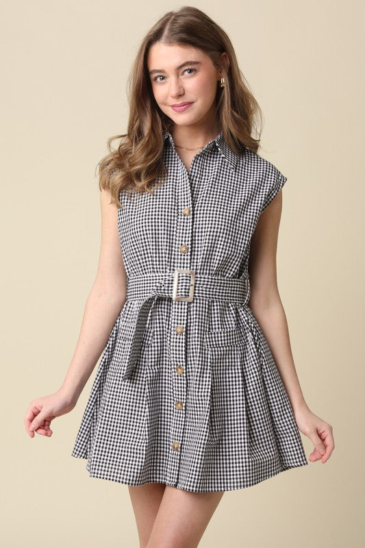 Black/White Gingham Belted Dress