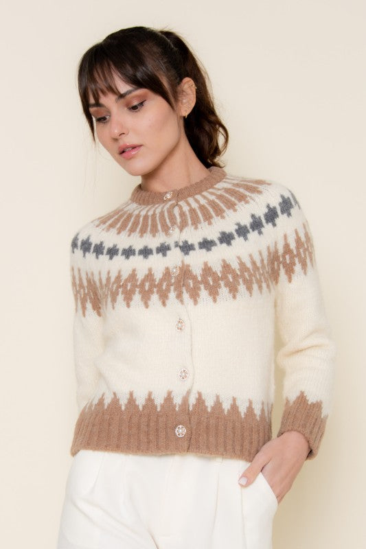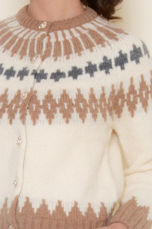 Cream Multi Print Knitted Cardigan
