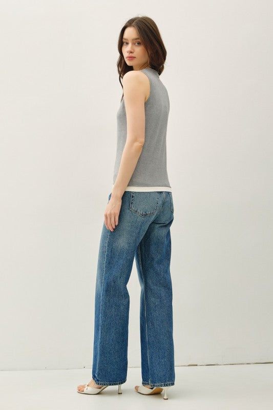Heather Grey Soft Faux Layered Sweater Tank Top