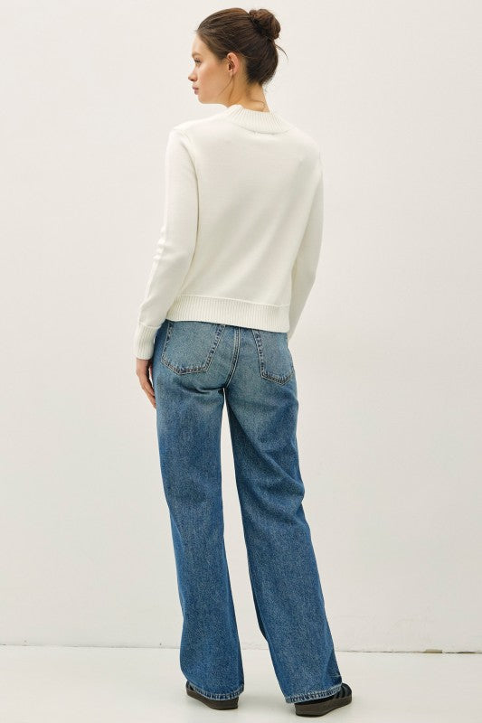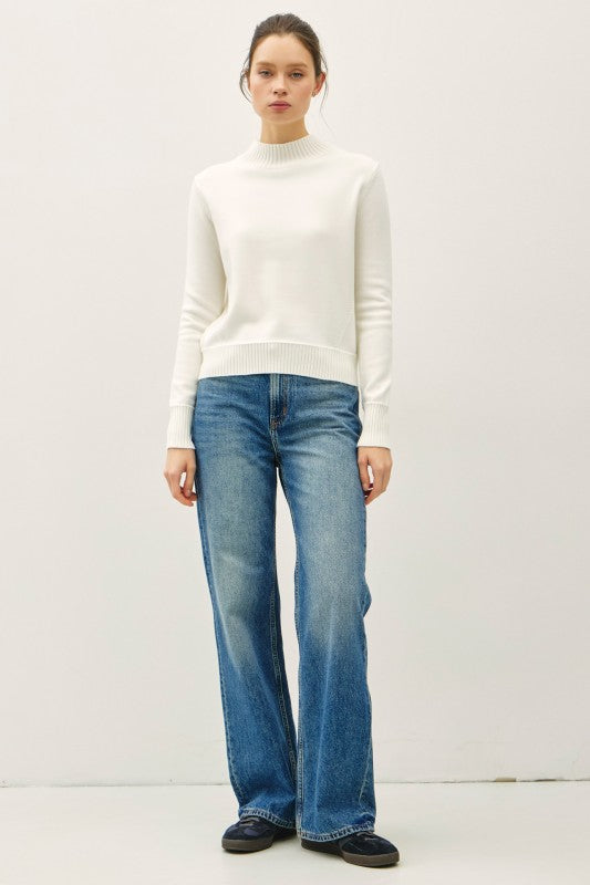 Ivory Ultra Soft Mock Neck Classic Sweater