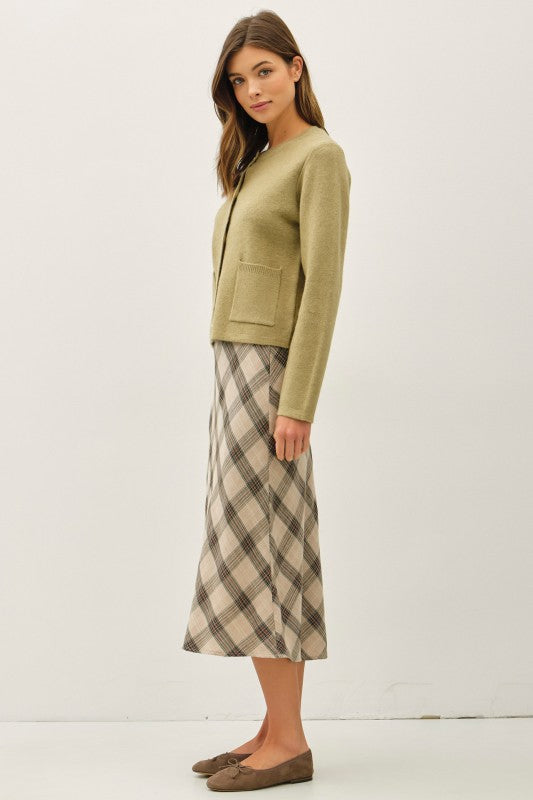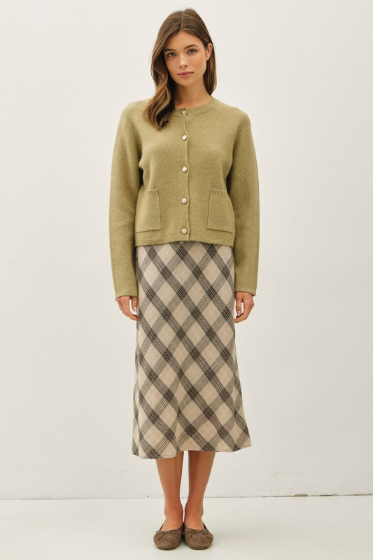 Lt. Olive Gold Button Cardigan Top