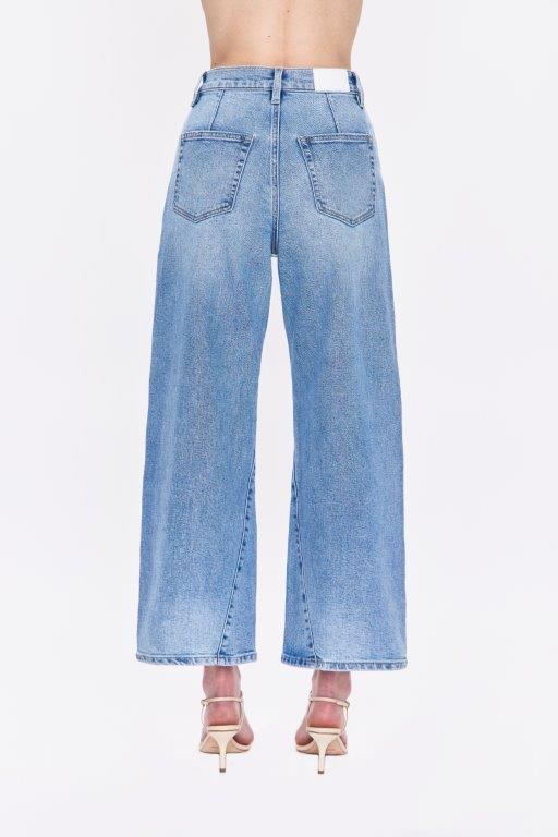 Make a statement in the Pistola Terrace Kyra Ankle Jean — where vintage charm meets modern flair. This high-rise, wide-leg silhouette features a light blue wash with subtle fading and a flattering cropped length that hits just above the ankle. Crafted with a soft, comfortable stretch denim, the Kyra offers a relaxed yet structured fit perfect for day-to-night styling. Pair with heels, sneakers, or sandals for an effortlessly cool and polished look.