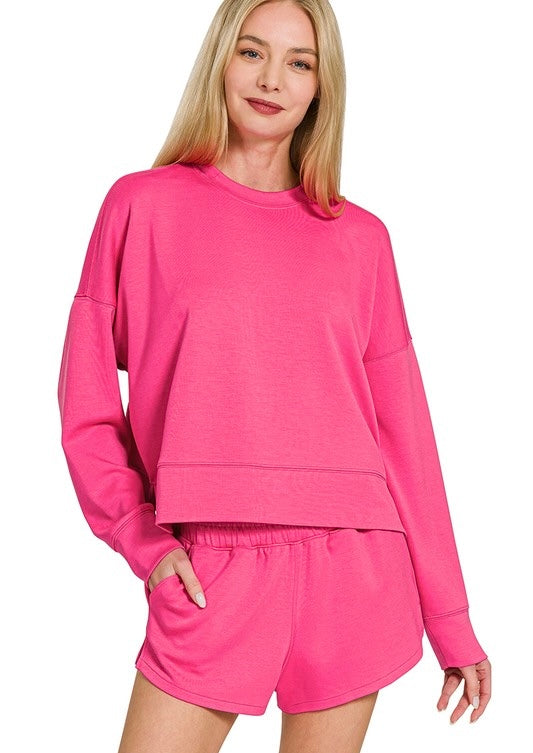 Scuba LS Sweatshirt & Shorts Set Hot Pink