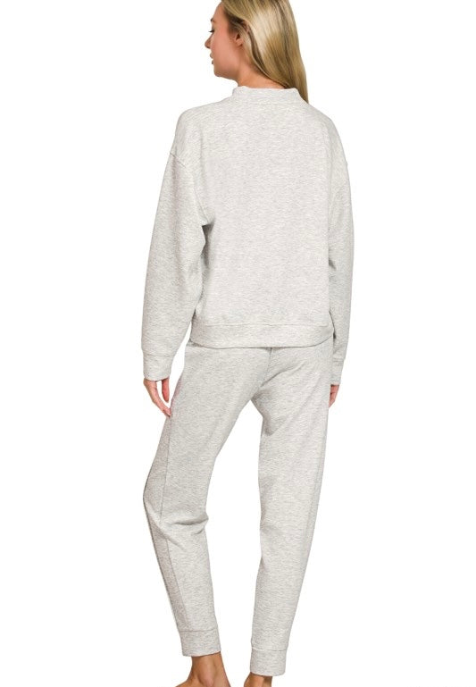 Scuba Mock Neck Pullover w/ Jogger Set Heather Grey