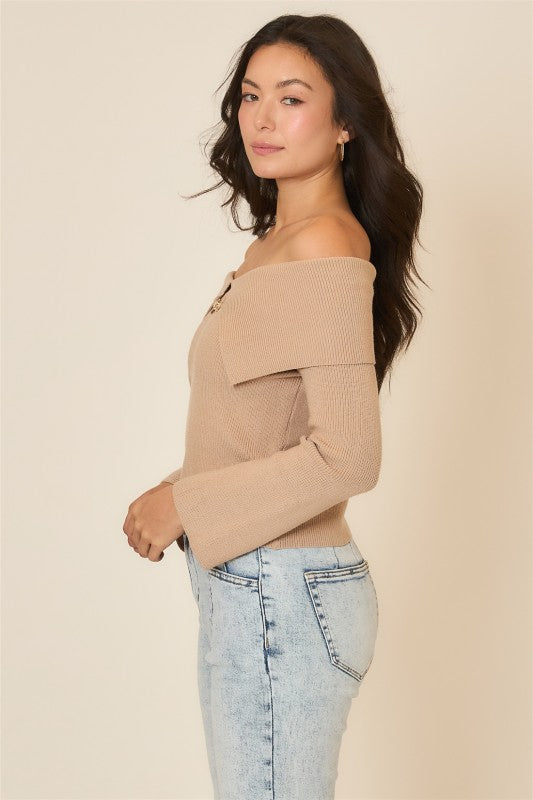 Taupe Cropped OTS Shawl Collar Sweater
