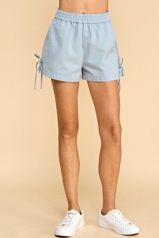 Powder Blue Side Tie Denim Shorts