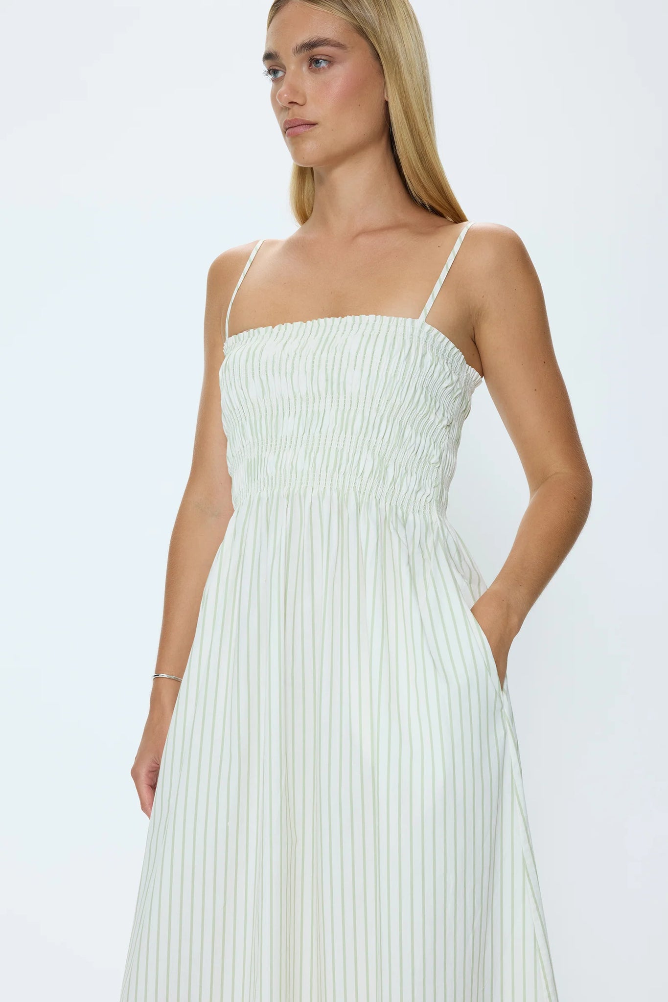 Pistola Sage/Egret Bianca Shirred Bodice Dress