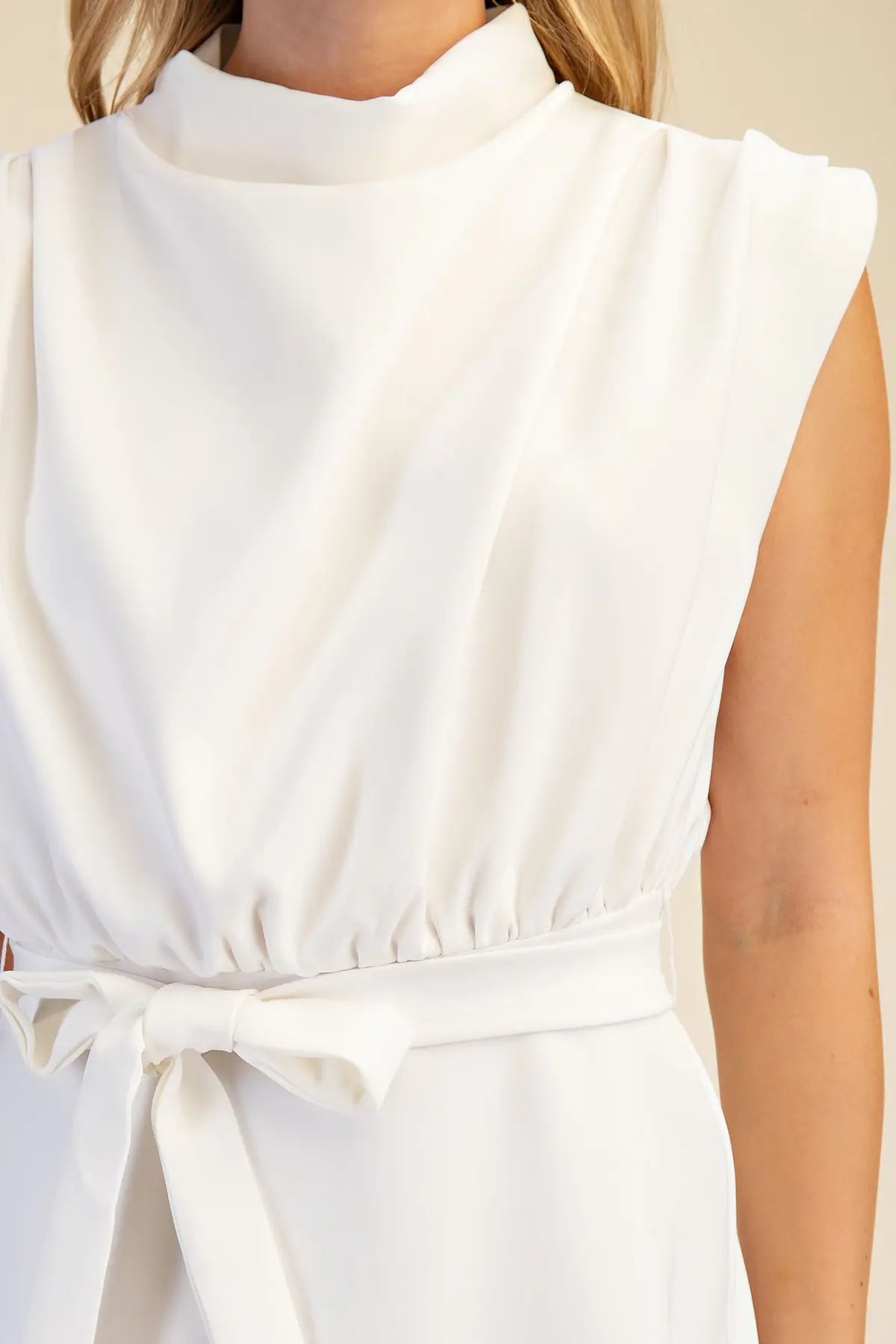 White Cowl Neck Mini Dress