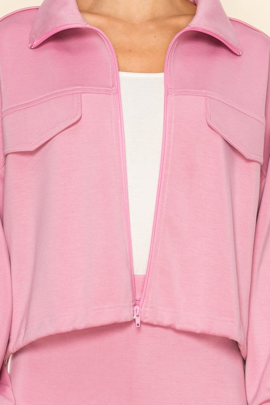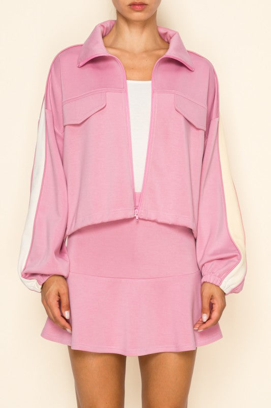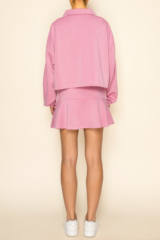 Pink/Cream Scuba Jacket + Skort Set