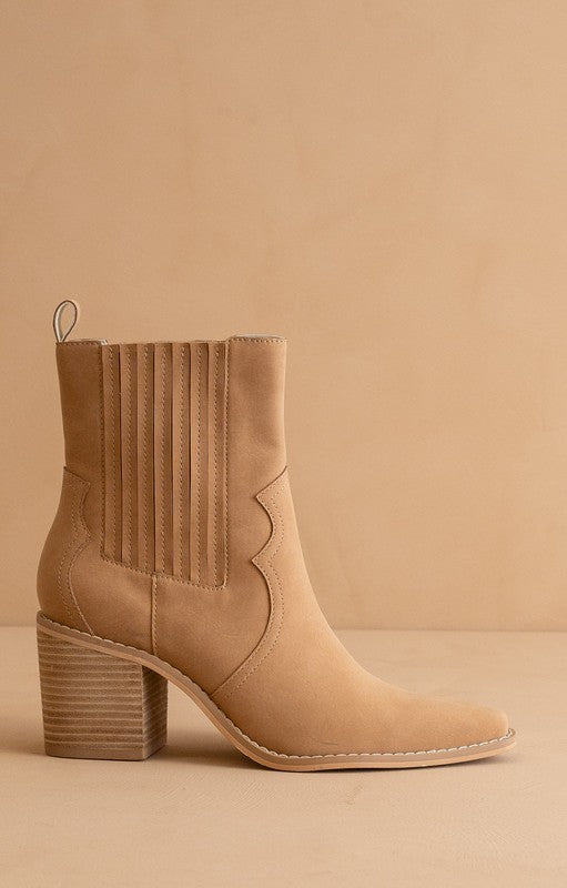 Camel Paneled Western Bootie