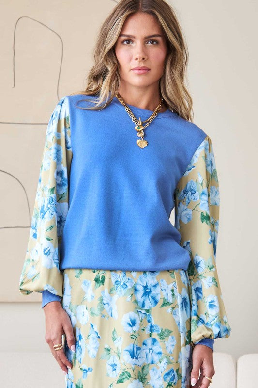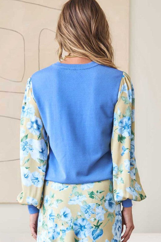 Light Blue Floral Slv Combo Sweater