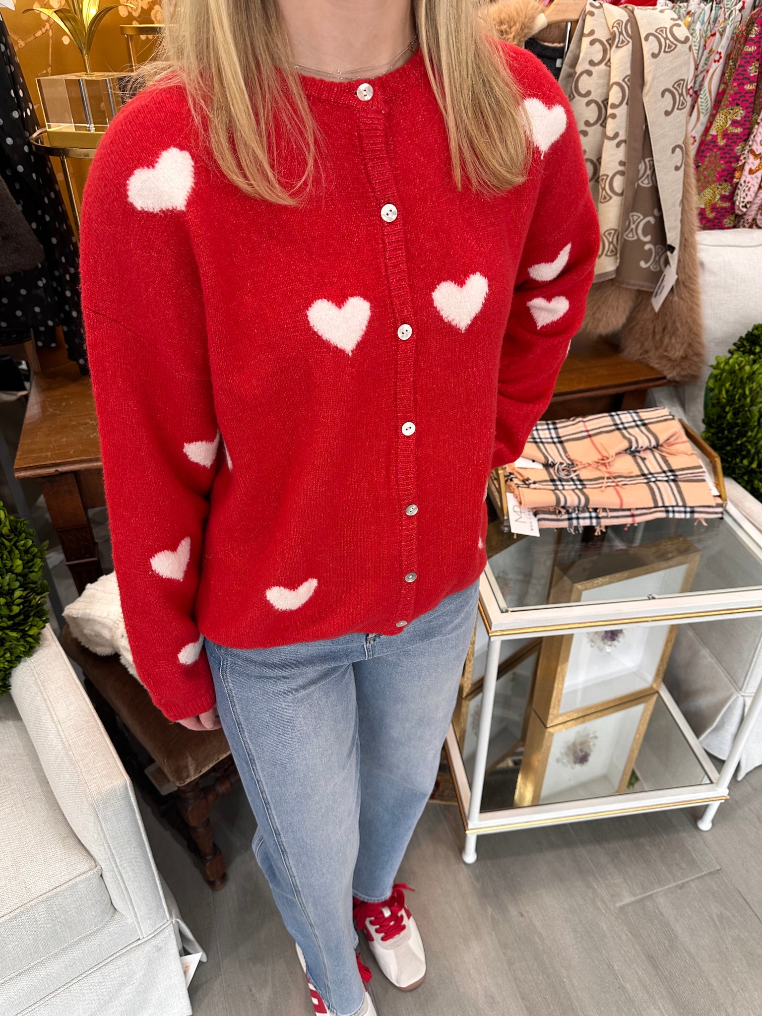 Red/White Heart Sweater Cardigan