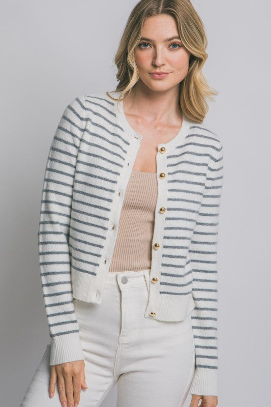 Ivory Striped Gold Button Cardigan