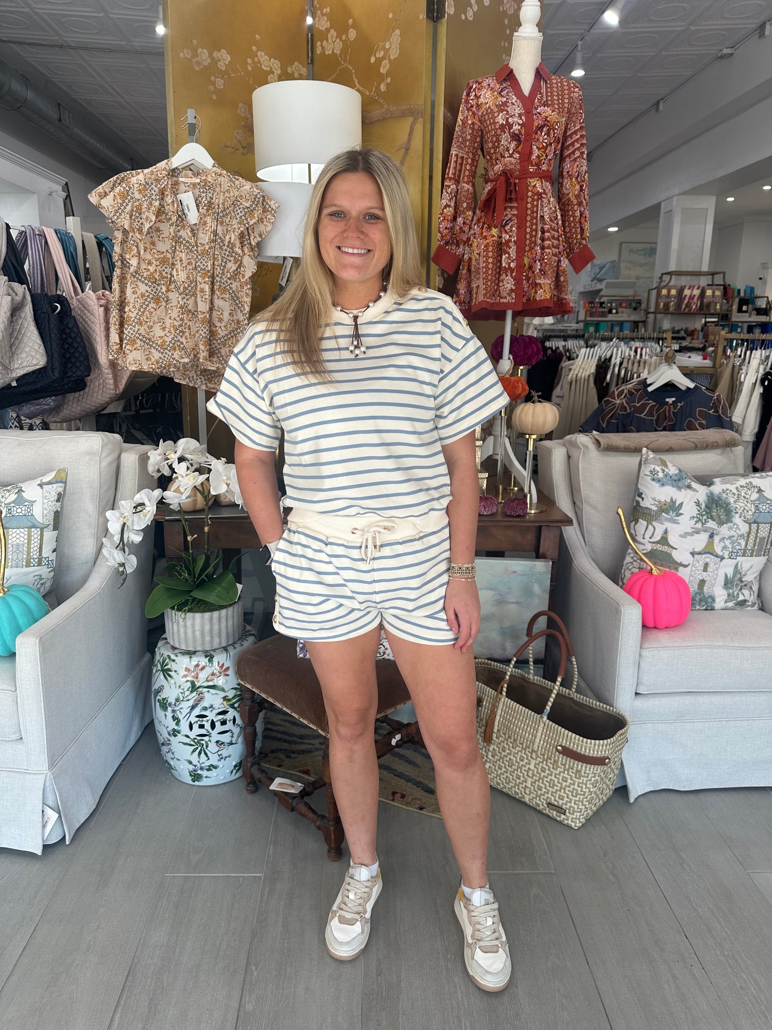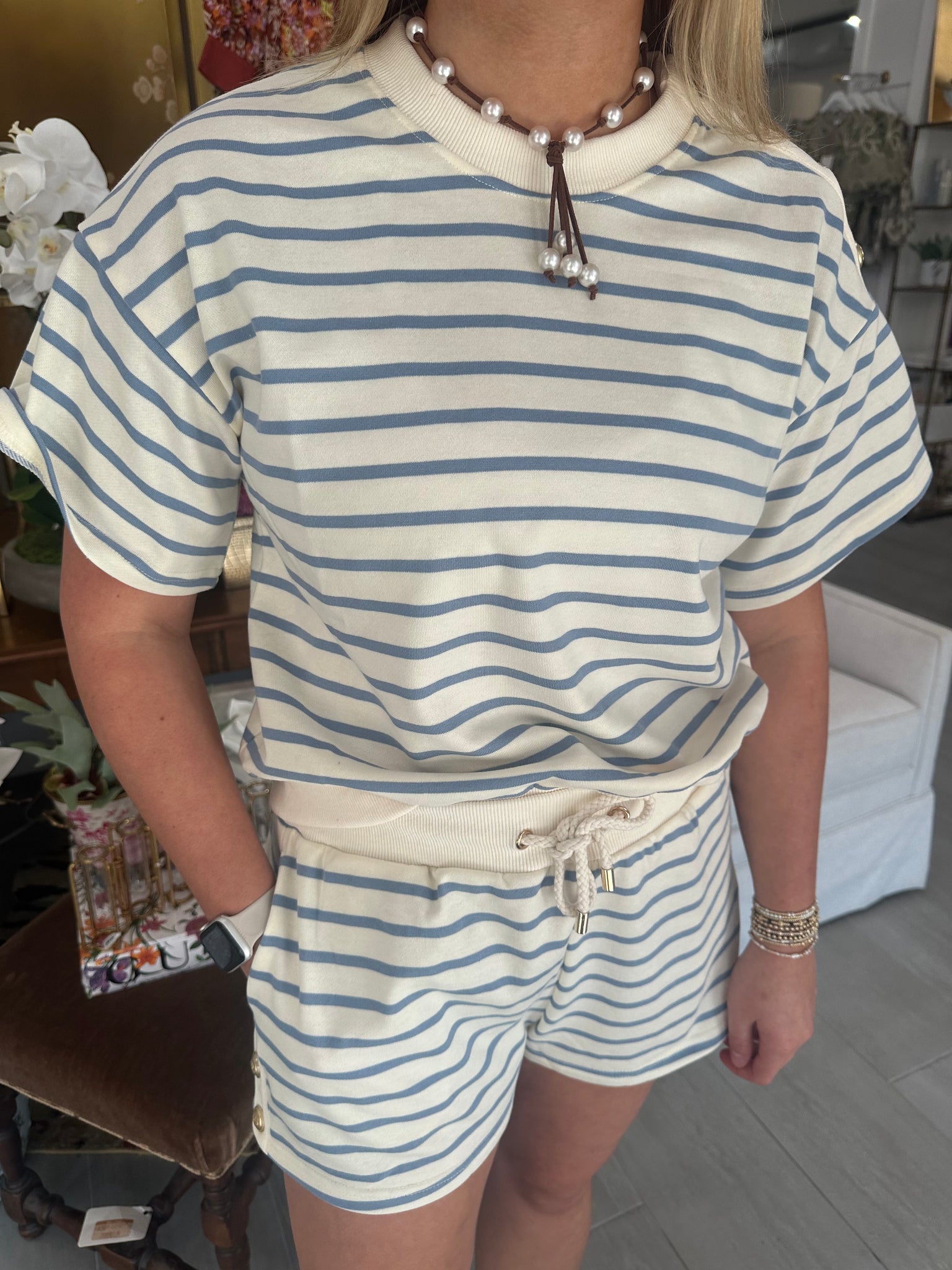 Light Blue Striped Gold Button Set
