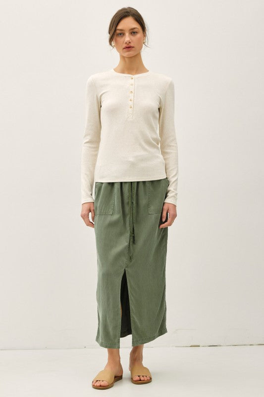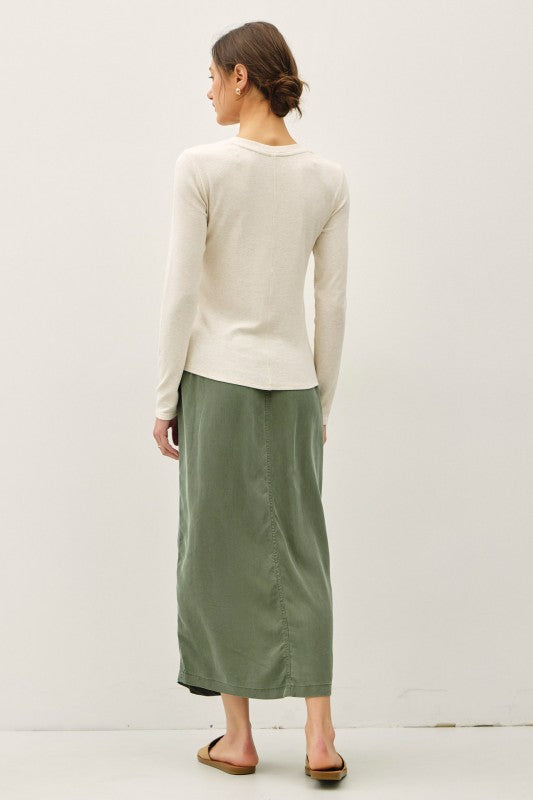 Oatmeal Modal Ribbed LS Henley Top
