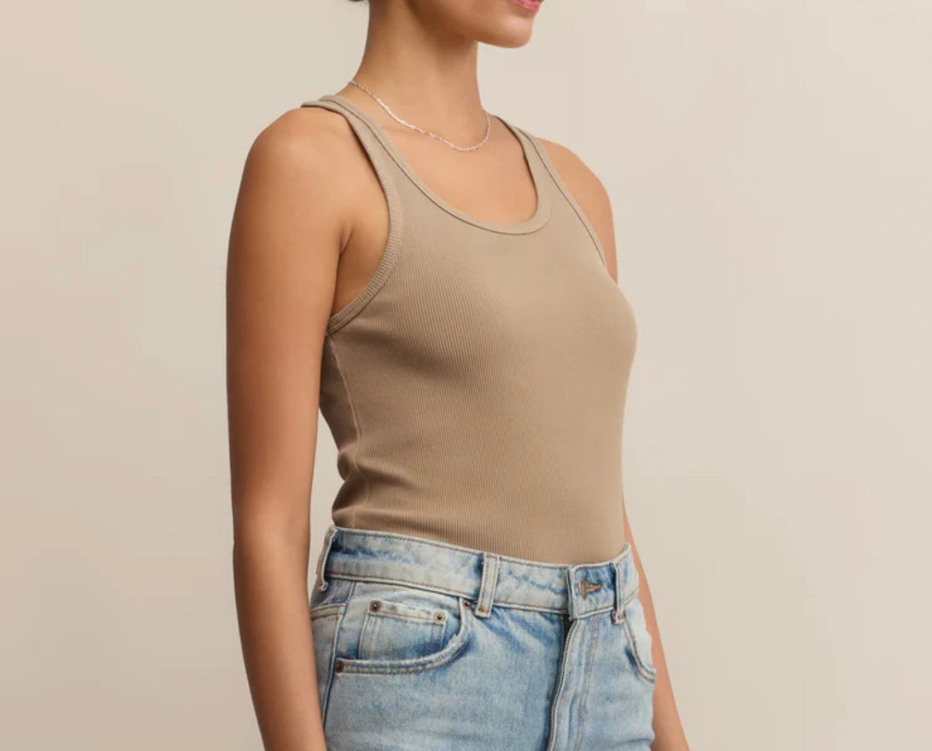 Elevate your essentials with the Z Supply Desert Tan Classic Ribbed Scoop Tank Top. Crafted from a soft, stretchy ribbed knit, this versatile tank features a flattering scoop neckline and a fitted silhouette that layers effortlessly or stands strong on its own. The neutral desert tan hue pairs seamlessly with everything from denim to skirts, making it a timeless staple for everyday wear.