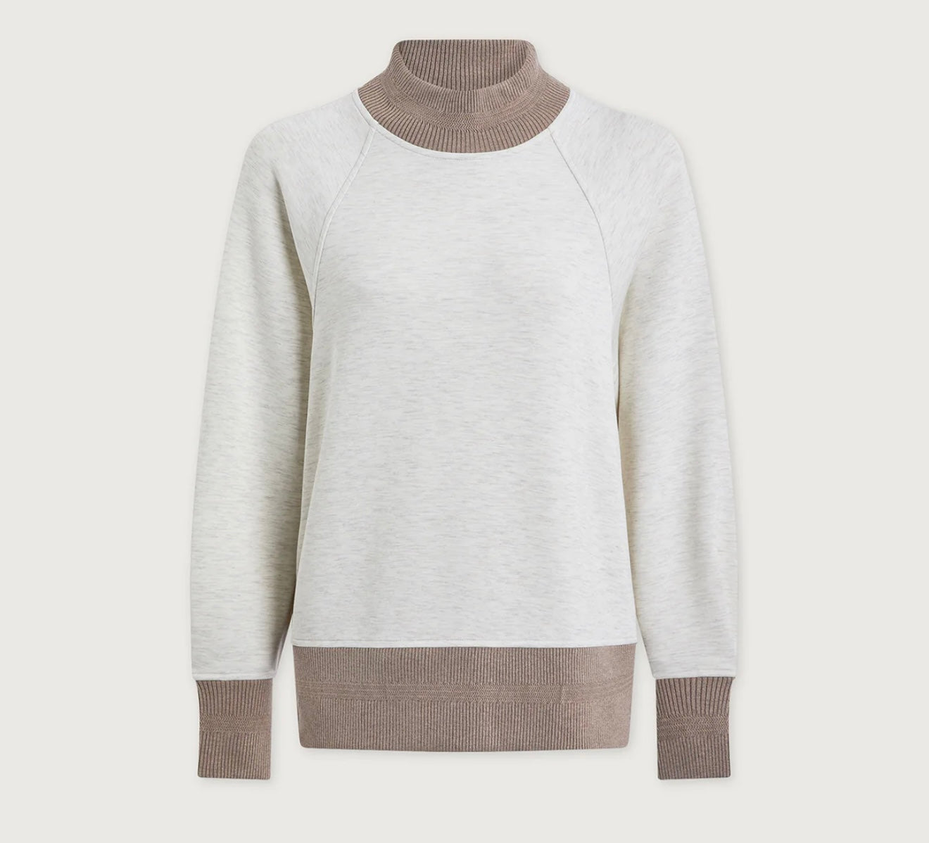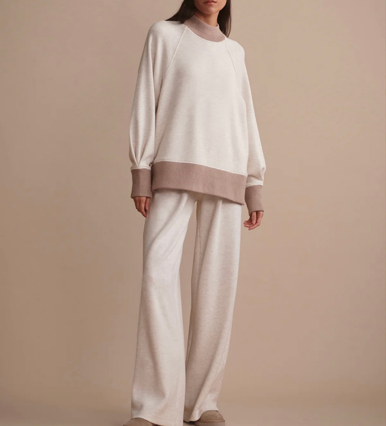 Varley Loxely Raglan Boyfriend Sweat-Ivory Marl/Taupe Marl
