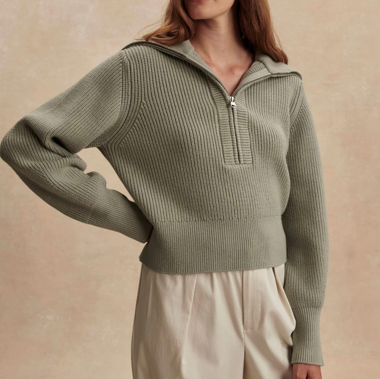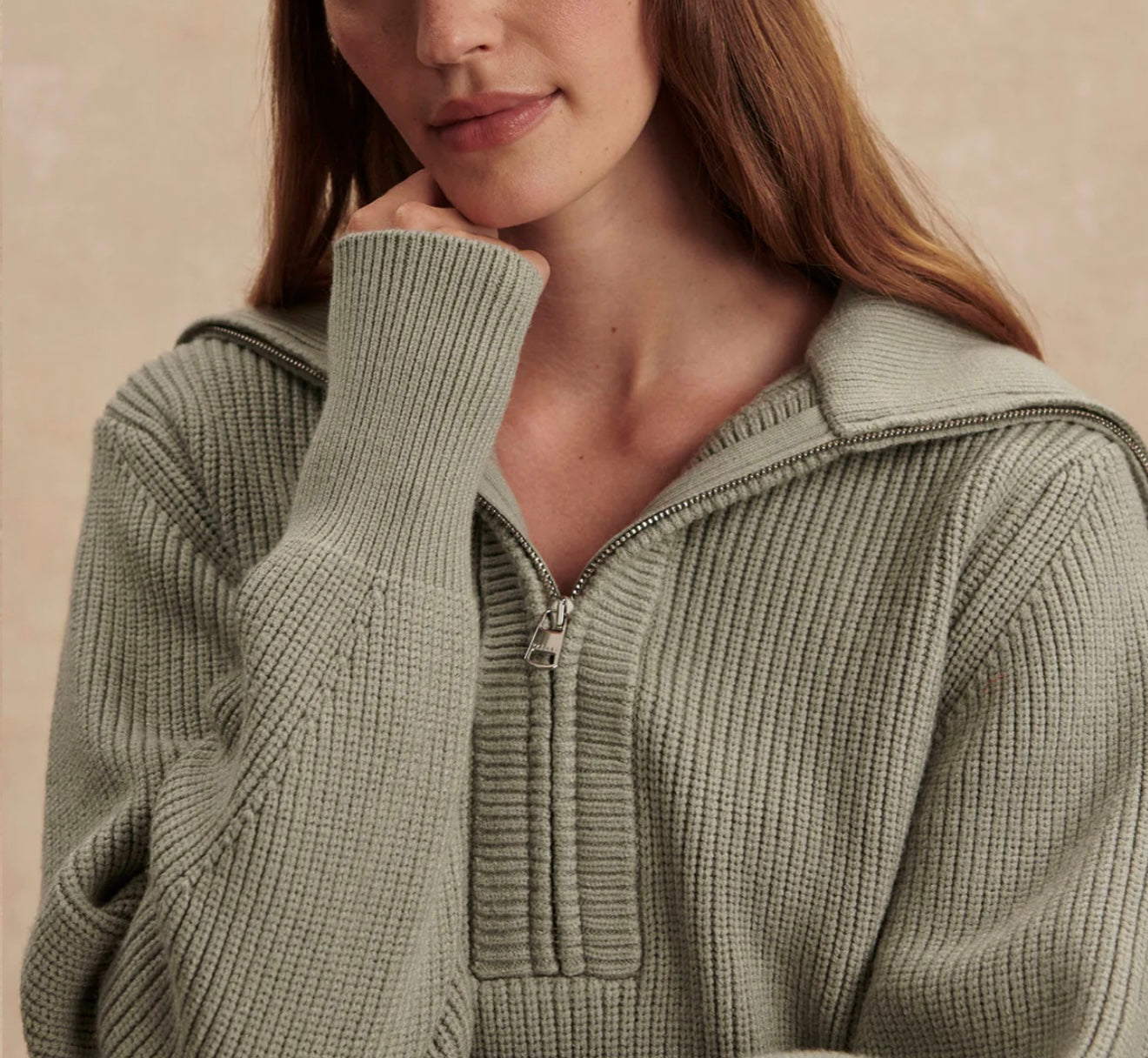 Varley Maura Half Zip Rib Knit-Agate Grey